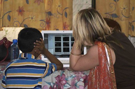 Lokking at pictures in the orphanage